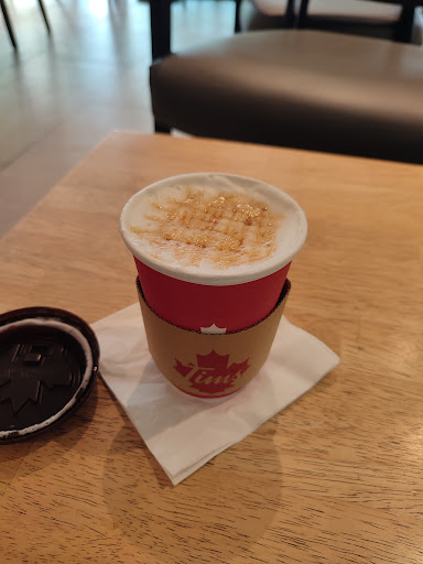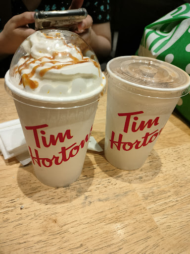 Standard Tim Hortons quality food and drink. The place downstairs is a bit small though. With only 6 small tables indoors; 2 of which are reserved for PWDs and Senior citizens. The management here refuses to open up the 2nd floor for whatever reason. I've stayed here a couple of times and I've seen students, businessmen, or even just ordinary people wanting a place to stay and enjoy their cup of coffee inside the cafe. They are either forced to stay outside or they just look for another place to buy their coffee. If you're ever lucky to get a seat inside, you'll be surprised that the restroom upstairs isn't open for customer use. The nearest restroom is on the 2nd floor of Kia theater which is outside the cafe. The staff are a bit boisterous too. On a positive note, they always keep the place clean...