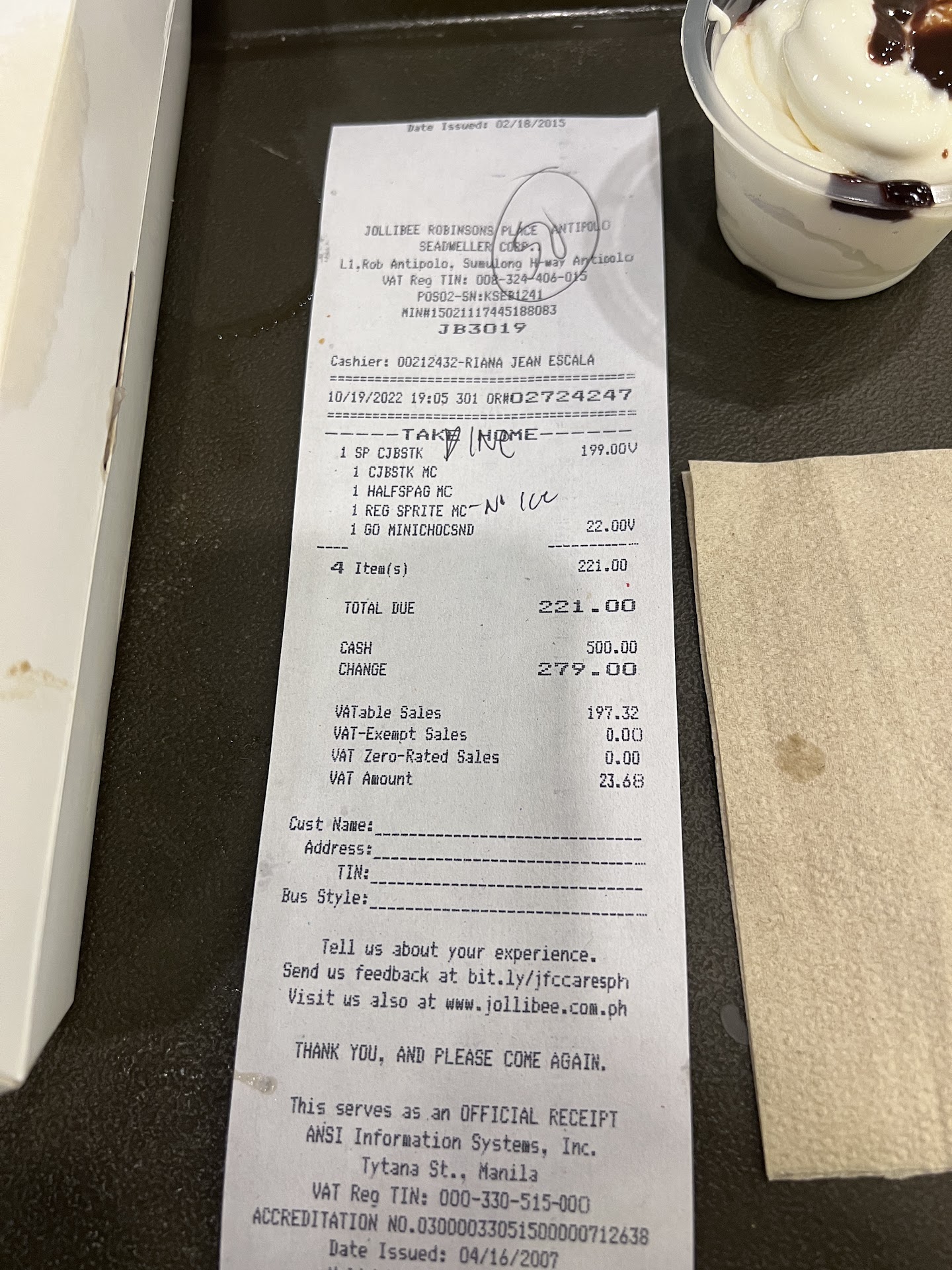 Read moreThis is the first time we dined at Jollibee here because, most of the time, all the seats are occupied. The place is too small to accommodate the volume of customers. We ordered iced mocha, but the crew mistakenly put sundae ice cream on top. Instead of replacing the drink entirely, he simply removed the ice cream with a spoon he picked up elsewhere and served it anyway. There seems to be no...