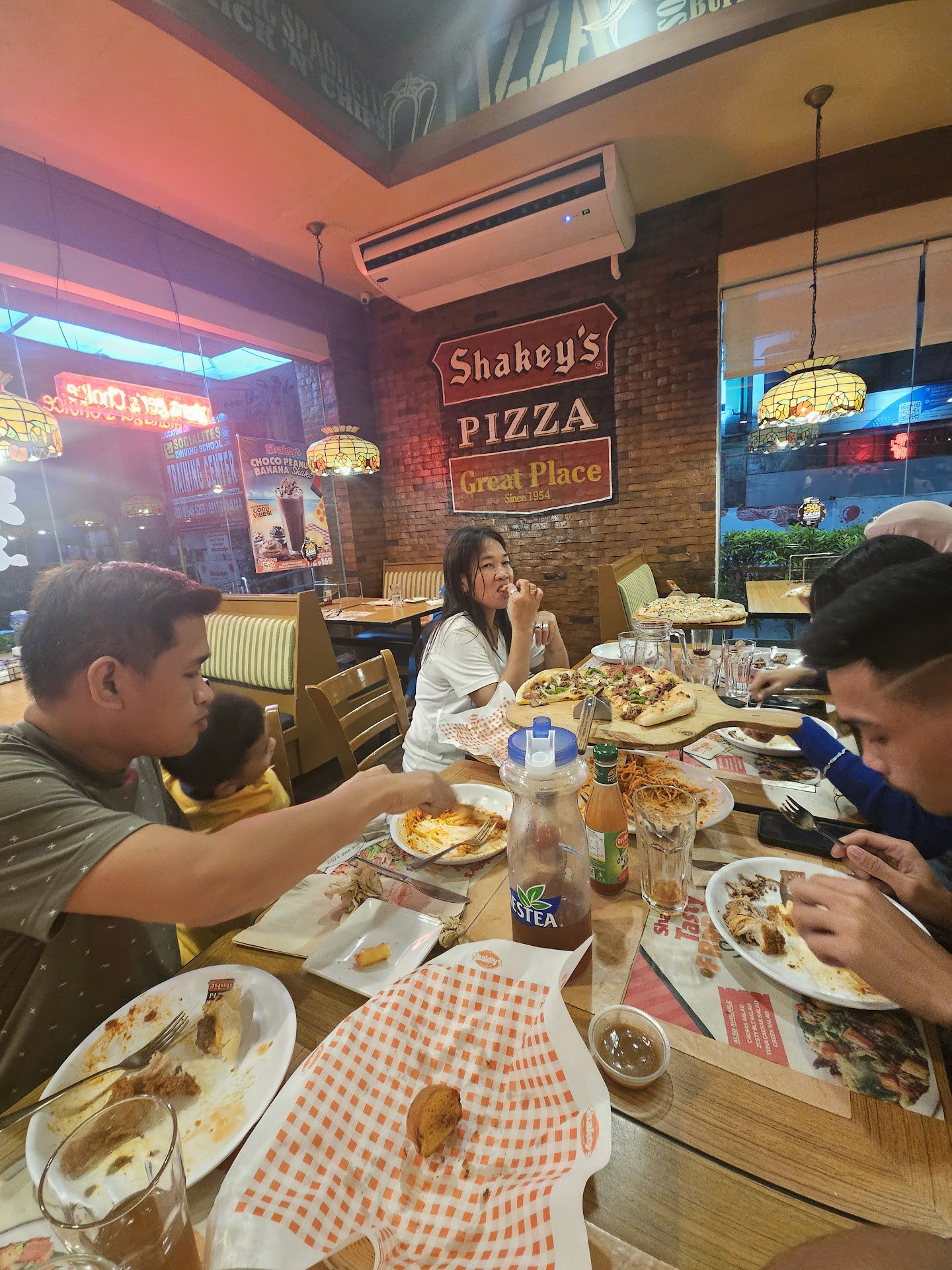 Went with my family. 8 of us. Waited patiently for sooooo many things. Asked for ice cubes for our drinks, 4 times. They took 20 mins to arrive. Asked for water. Took another 20 mins and several reminders to arrive. Asked for napkins. Waited for ten minutes and gave up and went to the counter to get them myself. All food arrived eventually, bar my meal. I had ordered the good burger. A different burger arrived than the one I ordered. So I kindly asked for it to be replaced and corrected. I waited another 30 mins. Meanwhile the rest of my family had finished all their food and were ready to leave. My burger finally arrived and when I touched it, it was cold. I opened the bun and found that the patty was completely frozen. I went to the counter to show them. They said they would "put it in the microwave. I obviously declined the offer. So yeah, waited over an hour and didn't get to eat any food. I ordered Army Navy to be delivered to my house. Much better idea, won't make the mistake of going to shakey's again. The staff were apologetic and kind and the manager took my order off the bill at the end. But unfortunately it didn't make up for the countless mistakes and lack of basic service expected in a restaurant. I can deal with little errors and waiting for things. But frozen patties is just dangerous to serve to people. Glad I didn't take a bite.
