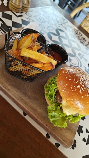 We decided to stay for dinner. And we ordered burger with fries and pizza. The presentation was nice. The moment my burger was served in front of me, I knew just by the smell that something is not right. They use and re-use old oil for frying that's why the fries looked, smelled and tasted horrible. It tasted old and very, very salty. The burger was salty as well. The pizza was not very good either as the crust/dough was undercooked. Their drinks were terrible as well. I ordered a mango margaritas aside from it not tasting like mango, there was hardly any alcohol in there.