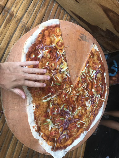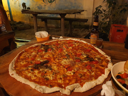 Read moreGood things first: yes, the pizza is huge, they have salt, pepper, olive oil, garlic oil and olio santo (peperoncino oil) on the tables so you can spice up your pizza to your liking. The staff is friendly too. But now it starts: the base is basically dough and tomato. If there is even a 100g of cheese on a 60cm diameter pizza then that's a lot. Toppings are pure homeopathy. We could only taste the gorgonzola in one single piece of the pizza. And I'm not talking deep dish pizza here as I grew up right at the border to Italy. Sorry but it's like selling water saying it's wine... As a bonus the pizzaiolo walked out of the toilet before our eyes without washing his hands and went right back to...