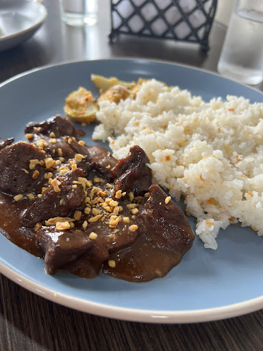 it’s in the middle-of-nowhere pastry shop with a few main course dishes. i had the beef salpicao for late lunch and was blown away by how rich the flavors were! a really good mix of sweet and garlicky sauce, perfectly paired with garlic rice!