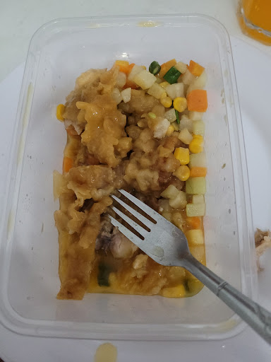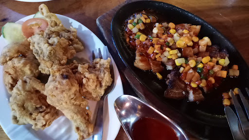 The chicken with corn tasted ok not exceptional. Although it would of been more accurate if it was labeled chicken bone with corn because there was more bone than chicken. What is it with the Philippines not selling chicken breast just pieces of the breast? My wife had bone marrow steak and she said it didn't taste good and it was tuff. The table we sat at was separate from the rest of the place, we were getting wet from rain. On a positive note the fries were excellent just wish they had better ketchup.