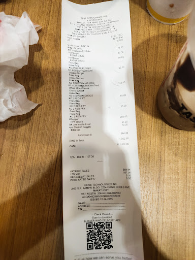Read moreNot following orders, wrong items served, didnt even mention that coke is not available, and decided to just serve iced tea. I asked for heavy veggies but cashier only punched heavy lettuce. When I order in other branches its veggies that is punched not only lettuce so I do not know why in this branch, the cashier decided that its only lettuce. An additional of 19 pesos for heavy veggies but only lettuce was given and in very small serving. Cashier decides for himself and do not ask the customer....