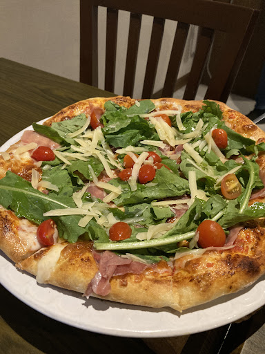 I began my meal with a delicious Parma Pizza. The pizza was topped with a generous amount of mozzarella, cherry tomatoes, and fresh arugula, and the crust was perfectly thin and crispy. It was truly one of the best pizzas I have ever had.