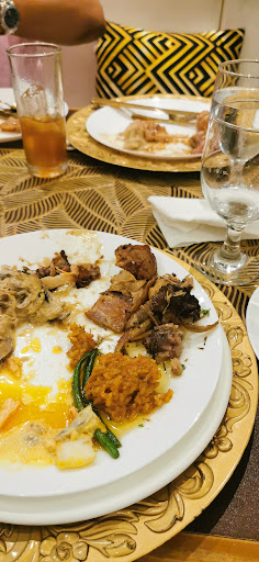 ATMOSPHERE: 4/10 - First, some of the furniture was broken, peeling, and/or town and the main gold plate that you see in most of the photos was dirty. It's a red flag if you dine somewhere, wipe their dishes, and find gunk. It was not clean. Second, we kept running out of food which I never thought could happen in a buffet. You would have to wait in 15 minute increments to wait for the food to be replenished. Again, this may be linked to the fact they are understaffed. You cannot really call the decor elegant if it's destroyed or fraying at the ends...