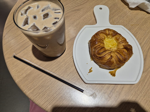 The custard Danish was super tough, none of that flaky croissant texture I was expecting, like it's been on display...