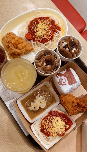 Read moreFood 3/5 Spaghetti ⭐️⭐️⭐️ - Al dente noodles in thick sweet tomato sauce served with hotdogs Chickenjoy - ⭐️⭐️ Juicy & tender chicken perfectly fried Choco Crumble Sundae ⭐️⭐️⭐️⭐️- Vanilla soft serve with broken up chips ahoy chocolate sauce & caramel sauce