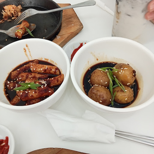 The Banchans were equally impressive. ๐๐ซ๐๐ข๐ฌ๐๐ ๐๐จ๐ญ๐๐ญ๐จ๐๐ฌ (๐/๐) and ๐๐ญ๐๐จ๐ค๐๐จ๐ค๐ค๐ข (๐.๐/๐) were delicious. The spiciness of the Tteokbokki perfectly complemented its chewy texture, creating a symphony of flavors. My partner, who's not a fan of the spiciness of the Tteokbokki sauce, found himself dipping it into the sauce of the braised potatoes, and he approved.