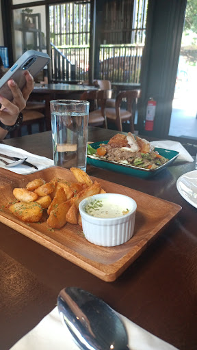 Read moreFood took long time to get (45-70min) and each dish was served with 15min waiting between even tho we where the only guests and they somehow forgot one of three burgers we ordered, my pancit and bicol express taste good but the meat on it was 100% fat, service was slow and drinks (took 20min to get)was not served to each individual just put on table end. The whole place is strangely built with many rooms without vibes and ambiance that other fake...