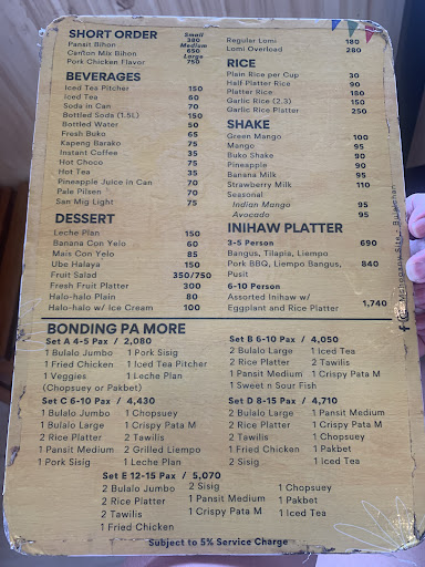 AMBIANCE: Arriving around 9 PM, we were aware that many establishments in Tagaytay were already closing. However, this restaurant is a must-visit if you're craving bulalo late at night. The restroom was acceptable, though not impeccably clean, likely due to heavy customer traffic earlier. Additionally, ample parking space is available, ideal for accommodating large groups or families. The traditional kubo setups add a touch of Filipino ambiance as you enjoy their delicious offerings.