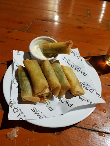 Papa Doms is located in a complex of several restaurant/bar establishments. I was initially attracted to the complex because of the huge lighted sign of one of the other resto/bars located there. It looked dead so I started checking around. I was approached by a couple of young ladies each promoting a different bar. I chose Papa Doms because I felt like a burger and they had one. You can choose to sit outside on the huge patio that is shared by another resto/bar or inside. I chose inside. Be advised that smoking is allowed inside. The bar was about half full inside and lots of the tables outside were also occupied. I ordered a Red Horse beer and checked out the menu, even though I knew I would likely order the burger. My beer arrived and it was nice and cold. I had looked at the menu and there were lots of good choices, but I decided on the burger. The cooks here are fast! I wasn't even finished my first beer when my burger arrived. It was delicious. The caramelized onions were perfect. The fries were crisp and tasty. They provide mayo to dip. I enjoyed every bite. My server could have been a bit more attentive. Every time I wanted another beer I had to flag him down, but to his credit, after about the third beer he got it and he started checking on me. The atmosphere is very casual. The crowd is a mixture of all ages. The music is decent and not so loud that you can't talk. They had a separate room where you could play beer pong. And this room also has a CR so if you can't wait for one of the CR's in the main bar, this is an option. I'm sure the view is spectacular, but it was cloudy the evening I was there so I wasn't able to appreciate it. As the evening progressed, the bar filled up. I was feeling a bit hungry again so I decided to order some Dyno Rolls. These are similar to the Filipino street food called Dynamite, which is a green chilli stuffed with cheese and wrapped in a lumpia wraper then deep fried. The rolls were delicious and made for excellent pulutan. My overall experience was a good one. I had a nice conversation with some Filipinos sitting at the table next to me, and they gave me a shot of their "cocktail" they were drinking. It was a fruit drink spiked with vodka, served in a jug with ice. I saw a lot of tables drinking the same thing. They drank it from shot glasses and it was tasty. Check out Papa Doms if you are staying in Tagaytay. I know I will again the next...