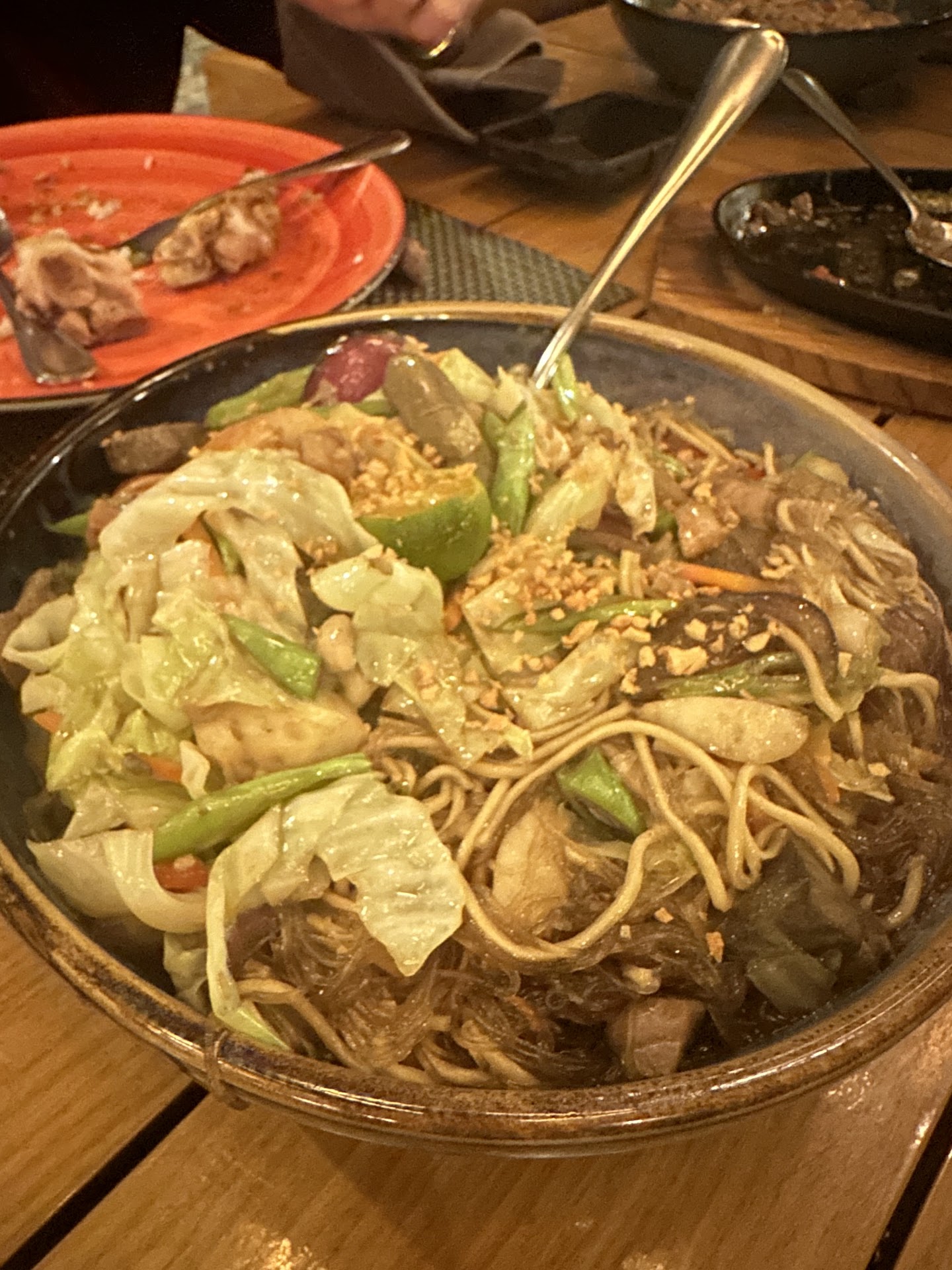 Food-wise, everything was flavourful. We ordered the crispy pata (which was crispy and good), pan it bam-i (were the flavours burst into your mouth), fruit platter (everything was ripe and sweet - mango, papaya, orange, watermelon, banana, pineapple), there was beef as well and sisig (beef was also tender and the sisig didn’t sizzle much but was still good), we also ordered the salad.