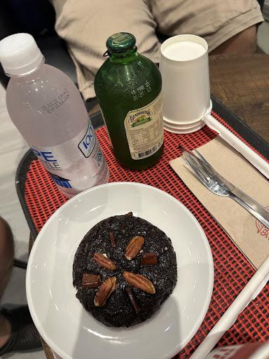 I ordered a chocolate cookie with pecan toppings. A bit sweet, but it was soft and had a good balance of texture and taste in the mouth.
