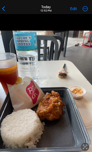 Read moreFood was served after ALMOST AN HOUR. I ordered the 1pc chicken with fries at lunch time. The crew wasn’t even apologetic about it. The cashier didn’t give me a receipt upon ordering so I had to ask for it after they served the food to know what time I ordered. The meal was ordered at 11:59:39AM it was served 12:52PM. I patiently waited because it was lunch hour and I expected the service to be slow BUT NOT A 50 MINUTE WAIT TIME after you order. They wasted someone else’s time and no one was even remotely apologetic.