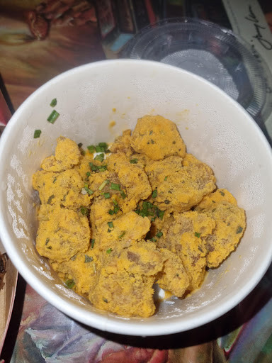 We ordered curly fries but received mostly broken pieces. Despite being crunchy and tasty, the serving felt quite small for the price, especially since it seemed to be weighed. The iced tea was pretty standard, too much ice though.