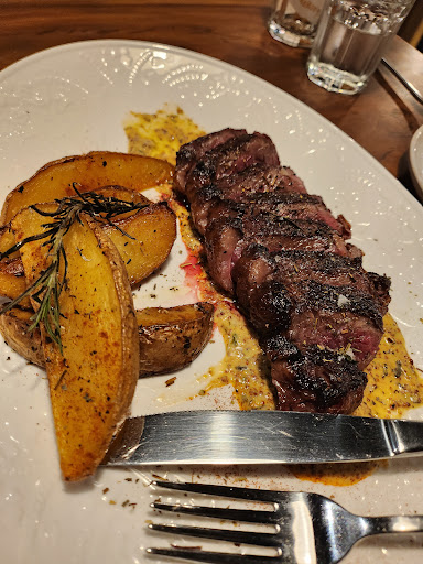The steak was cooked well, the mustard sauce it came with was quite enjoyable. Portion was too small for the price. This and the previous chicken dish were supposedly good for 4. 4 chicken thighs does not a meal for 4 make. Even fast food understands a 2pc chicken meal is only food for 1.