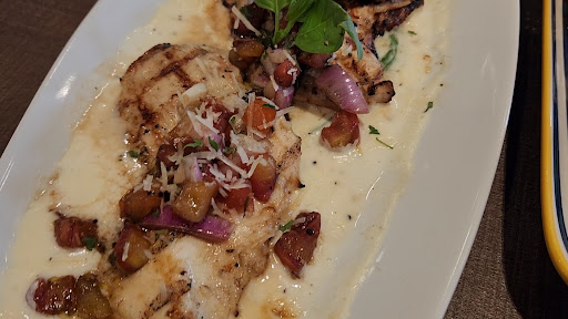 Our server Albert was friendly and efficient. He readily provided a container of iced water for our thirsty furbaby. He was alert and quick when we needed him. Sadly, he had to leave early and the servers who took over were rather impersonal. I have to say the female FOH acted like snooty snobs, wrinkling their noses at the sight of our four legged friend (who, mind you didn't make a mess or even bothered anyone). They came in and out of the side door behaving with utter disdain and acted like they'd much prefer it if we just left.