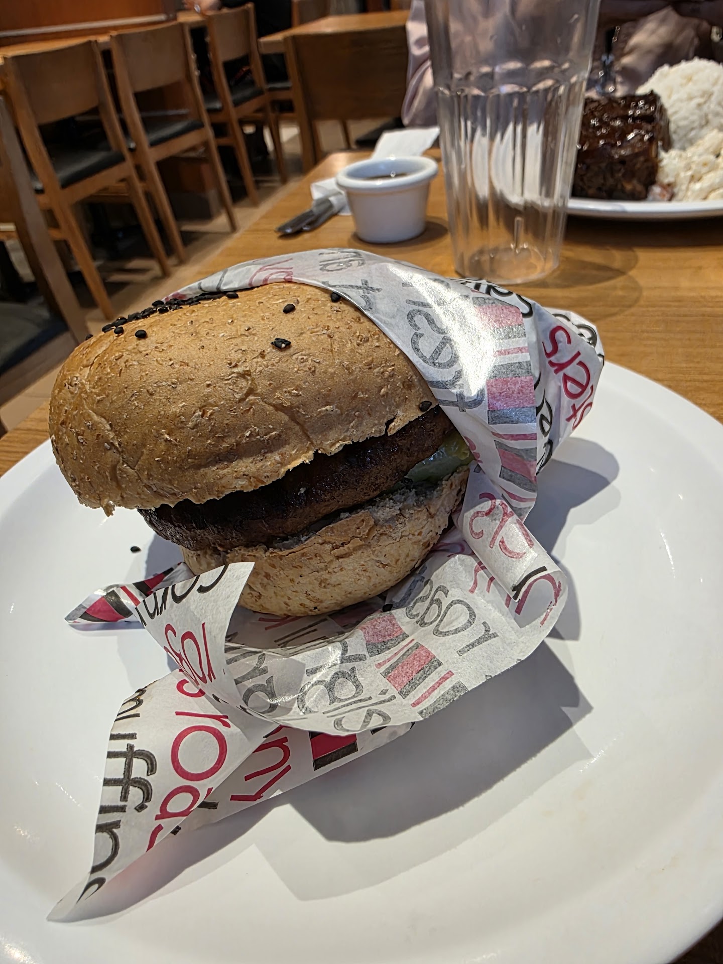 Ok. So, I'll start off by saying that I think I just made a bad decision in ordering the burger. I didn't know what to expect and should have definitely ordered the chicken instead. There was 4 of us and we all ordered different things. I'll just rate my order. I ordered the burger with macaroni and some kind of lemonade sparkling drink. So, before I rate it. This place is a lot like Boston Market (if you're familiar with it). The burger was nothing like I expected it to be. The meat quality was very weird and reminded me of a gas station burger. Actually, a little worse than a gas station burger. I can honestly say, I think it's the worst burger I've ever had. Remember those elementary school burgers that the lunch ladies used to make for us when we were kids? Those might actually be better than this burger. The macaroni was not bad, just was not warm. Believe it or not, the lemonade drink was actually REALLY good. I would say that it tastes the most similar to the brand Ice Sparkling Water lemonade, but a little sweeter than that. I tasted a small piece of the bbq chicken breast which was MUCH BETTER than the burger I ordered. So again, I think I just ordered the the wrong item. Staff was very friendly, though and place was nice and clean.