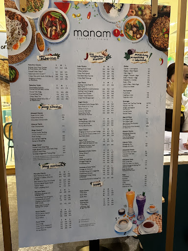 They serve unique and appetizing food. Manam's menu is divided into two sections. One section features classic filipino dishes and the other showcases dishes with creative twists. They offer three different sizes for all of their menu items: small, medium, and large.