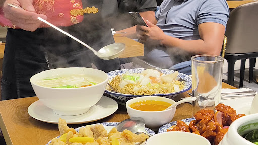 Read moreTucked in an area where there is less foot traffic, we are lucky to have found this Chinese restaurant. The place wasn't that crowded despite lunch time so we asked for the couch seat so that our little one has more space to play while waiting for the high chair. Overall look is modern and clean. Ordered orange chicken, sweet and sour pork, mix seafood fried noodles, seafood spinach soup and Broccoli Garlic. Waiting time was quick and they prepared the fried noodles at our table. I recommend the Broccoli in garlic as the veggies were fresh and crunchy. The sweet and sour pork was a winner as well in my opinion. In summary, if you are looking for a delicious, quiet and less crowded Chinese restaurant that is worth the price, I highly recommend you pay...