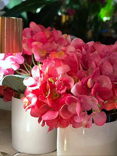 The table is topped with fake plants. In fact the entire space is filled with nasty old fake plants. The table lamp was dirty with other peopleās food.
