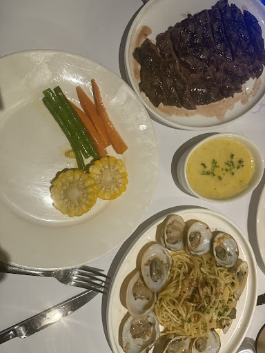 Read moreCelebrated our fourth anniversary here at Melo's last Saturday. Reserved for 8:00 PM but I called and asked if it was fine to go earlier. They were very kind and helpful and agreed. They seated us to a good spot (and even seated the stuffed toy we brought, lol!) and was very accommodating when it comes to food being picked out and answered all of my questions. All the staff greeted us and were very nice -- shoutout to our servers Jeff and Charles (absolute best) who made sure everything is taken care of. We ordered the Promotion for Two with the Angus steak. The food was amazing from the dinner rolls (very smooth bread and butter that melts in your mouth), caesar salad (one of the best I've ever had, the soup on the other hand was okay, we didn't get to finish it, shrimp gambas (absolutely 10/10), the steak (highly recommended, it was very good!), and lastly, the dessert (gelatin)! We also had two glasses of red. They also asked us if we were celebrating anything and when we said it was for an anniversary, they really went all out and gave us free dessert too (mini pie, mini cake, strawberries, and whipped cream + milk). Overall, our bill was worth it! Would definitely go back soon. There also was a smoking area that made the experience excellent overall. Thank you so much for making our anniversary celebration...