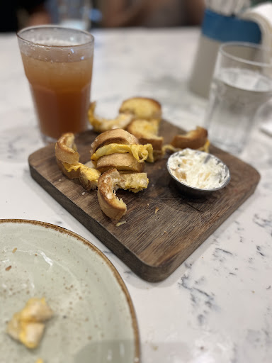 grilled cheese: multiple mini grilled cheese on baguette slices. Looks like a small portion but was filling. The dip was missing flavour.