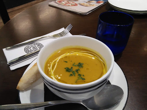 FOOD Pricing of their pizzas set the expectation that their recipes were out-of-this-world delicious! And they followed through after we tasted the Liguria P490, which basically had all these: prawns, mussels, squid, clams, capers, olives, breadcrumbs, garlic, parsley, lemon, and bechamel. These easily showed how special the pizza was and the serving size felt like a bonus already. I'm speechless about the overall taste. It was really, really good! We can say the same for the Pumpkin Soup Php185. Quality was just so much better than what we were accustomed to. Soup's bread was bland but its fluff made it a great soup partner anyway! Spaghetti al Pesto Genovese Php290 was aromatic and those cherry tomatoes were very refreshing! Eton Mess Jar Php260 had sour raspberries as expected and everything else was nicely sweet.