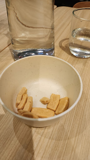 Decided to try Scout's Honor after reading positive reviews on it online. The restaurant isn't busy when we came so we just went through the door and the staff ushered us where to sit. They gave us a bottle of (room temperature) service water and a small bowl of their "chips" (which I think is just those piso each Kiss or Bangus lol) for us to eat while we peruse their menu.