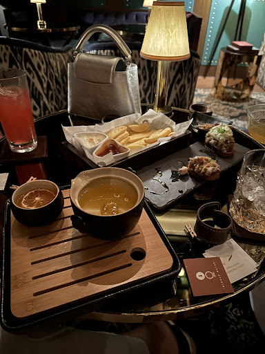 3.) There is a limited selection of food, which is reasonable since we primarily went there for the drinks. We ordered burrata and fries, both of which were good. However, the eggplant ingredient in the burrata dish caused a reaction on my lips, making them itchy. Despite this, the overall food offering was nice, earning a personal score of 7/10.