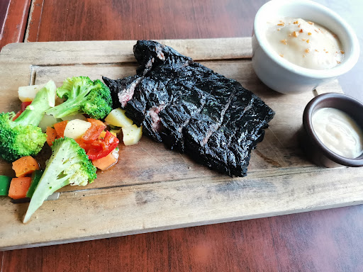 We arrived probably 8 in the evening, and it was really packed inside. It was Saturday so I assume that many people were also out to had their dinner that day. I inquired for seats and waited for about 2-3 minutes before we had our table. I asked if we could just eat on the seats outside but they were thoughtful enough to consider the moody weather during nighttime. Already inside, the staffs were too quick to pick-up cues. They brought us a bowl of nuts, and it was really good. We consumed the whole bowl unnoticeably, and the staff assigned to us even asked us if we still want more. For the food we had 2 different orders under the Pork category, and 1 order under the fish/seafood category. I also ordered 1 from starters, 1 from soups, and a cake for my brother. The pork were tender, it wasn't dry and it still had its juices during the time I was consuming it. The portions were also suitable for the prices. Of course, I tasted some of my mom's and brother's orders, and the taste were consistent. I just wish that they would improve the broccoli soup. It was stated in the menu that it was "new" so I assume that they're still navigating the product. It didn't have that impact of being a broccoli soup, I assume it was probably a puree then made into a soup. Maybe they could add a lil touch of color (probably that would match the color of a broccoli to make it more enticing and appetizing, and make the food speak for its name) but the taste and consistency was really great. I couldn't elaborate more about the food, it was really affordable for a steak house, compare to other steak houses that are just too pricy.