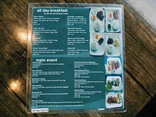 Food and beverage served: Nachos, Lasagna, Carbonara, NY Style Buffalo Wings, Honey Glazed Chicken, Hot Green Tea, Caramel Macchiato, Cookies and Cream, Kitkat Mocha, Frappe Green Tea (Matcha)