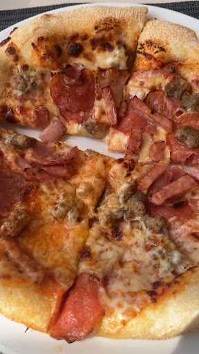 Most overpriced pizza ever! €17 for a little “medium” which was easily an individual in all over the world. No tomato spice, lots of cheese, some ham and a few olives. Really? When we arrived the place was empty and the employee gave to us the worst table! All the place empty and we could easily sit better. At the end the employee gave us a better table. Very slow to deliver a little “medium” pizza. God sake the price… Second time in my life in Pizza Hut....
