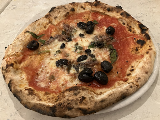 Read moreDon't go. We ordered a fungi and the anchovy caper pizza and the fungi one came and there wasn't much fungi on it. The anchovy caper pizza didn't have any caper which was the main reason why we ordered it and then when I asked them where is the caper they said oh that's a typo on the menu and it's not actually on the pizza which was super weird. The mozzarella was supposed to be buffalo mozzarella but it definitely was not. Also in Italy and many European countries, if you order Buffalo mozzarella you get a whole ball of it, but there was very little mozzarella and when we tested it there was no difference between the regular mozzarella and the buffalo mozzarella. There was also only three anchovies on it and the crust was a bit mushy and not crispy and when you look at the pizza maker he does not use his fists to make the pizza but he just stretches it by hand and the shape is very wonky and the tomato sauce is not dispersed evenly and the service was really bad. I will not be coming here again. It is way too expensive for what it is. There are basically little to no toppings like two pieces of basil. So yeah don't go if you want good service. Don't go if you want actual toppings. Don't go if you don't want to be...