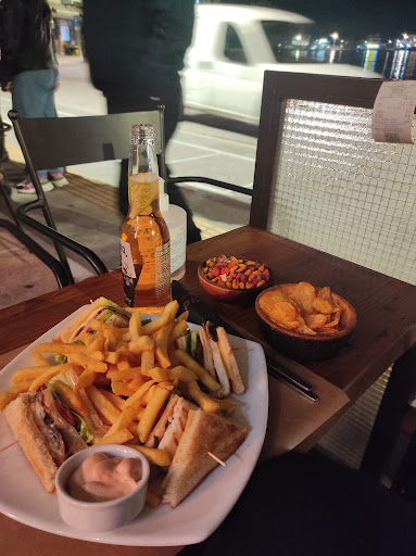 The atmosphere is really nice, and you can easily tell it’s one of the most popular bars on the island during the day. We visited once and ordered a hamburger with a side of French fries. Unfortunately, the hamburger was probably one of the worst I’ve ever had — the patty and the bun didn’t taste good at all. On the other hand, the portion of fries was very generous, so I guess most people prefer ordering snacks rather than a full meal. Drinks were good, and the vibe both inside and outside in the evening was enjoyable. I would recommend this place for drinks and maybe some snacks like fries, but not for a...