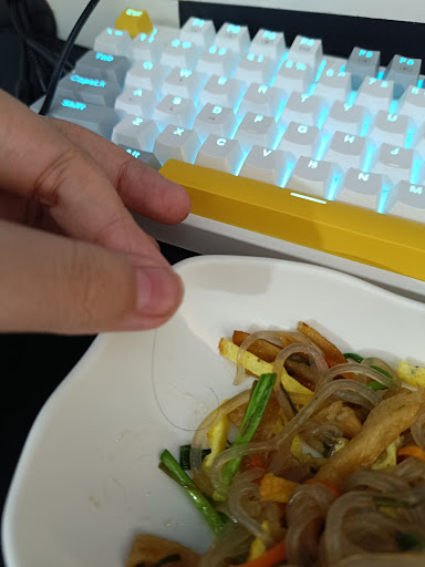 Keyboardnya enak bukan pakai clicky switch gak berisik.