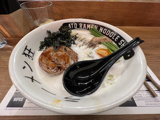Read moreSamą wizytę w lokalu należy podzielić na kilka kategorii, nie ze względu na złożoność procesu dostania się do lokalu i zamawiania jedzenia, a ze względu na samą wyjątkowość lokalu na polskiej mapie restauracji. Kategoria pierwsza- obsługa: Byłem nie raz i nie dwa w lokalu i nigdy nie spotkałem się z jakimkolwiek uchybieniem dotyczącym obsługi mojej osoby. Obsługa była zawsze miła i serdeczna, służyła zawsze pomocą i radą, a trzeba zaznaczyć, że przy takim natłoku pracy łatwo jest stracić głowę. Nawet podczas czekania na swój wymarzony stolik w kolejce przed lokalem zawsze widziałem w oczach pracowników pełne zaangażowanie i próbę wyłowienia jakiegokolwiek wolnego miejsca. Druga kategoria- jedzenie: Osobiście jestem zdania, że nie da się opisać (a przynajmniej ja nie śmiem tego zrobić) wyjątkowości i unikatowości smaków, jakie restauracja jest gotowa nam zaserwować. Do głowy przychodzą mi jedynie takie określenia jak - jedyne w swoim rodzaju, unikalne, spektakularne i wgniatające w ziemie innych konkurentów. Mogę z całą pewnością polecić serwowany ramen w owym lokalu każdemu kto chciałby doświadczyć wybitnego kunsztu, który jest przygotowywany na naszych oczach. Kategoria trzecia- klimat: Należy bowiem zaznaczyć, że kuchnia zaprojektowana została w stylu otwartym, gdzie można podziwiać, jak posiłki są przygotowywane. Wyróżnia to lokal na tle innych, gdyż tym samym obsługa daje do zrozumienia, że nie ma nic przed gośćmi do ukrycia. Pozostała część lokalu jest utrzymana w bardzo przytulnym industrialnym klimacie, gdzie można się odprężyć, pomimo liczebności klientów. Nie jest to bowiem pompatyczny lokal, a restauracja skierowana, by klient wyszedł z niej zadowolony i najedzony. Przeszklone liczne okna znakomicie doświetlają lokal w słoneczne dni. Czwarta kategoria- czas oczekiwania: Nie jest to do końca minus, a raczej niedogodność, z którą trzeba się liczyć odwiedzając lokal. Oczywiście nie jest tutaj mowa o czekaniu na zamówiony posiłek, który przychodzi do nas w relatywnie szybkim czasie, a raczej mowa o czekaniu, aż zwolni się wolny stolik, by zająć swoje upragnione miejsce. Restauracja bowiem przez swoją wyjątkowość boryka się codzienne z ogromnymi kolejkami gości, którzy pragną skosztować dzieł sztuki serwowanych w lokalu. Cena nie odstrasza, a fanów Ato Ramen jest coraz więc- nie dziwi więc fakt, że kolejki są spore. Obsługa robi co może, aby rozładowywać je w ekspresowym tempie co zawsze przykuwało moją uwagę. Mimo duży kolejek uważam, poczekać na serwowane w środku specjały. Podsumowanie: Jedzenie: duże porcje, pysznie, spory wybór w menu; Obsługa: pomocna, zaangażowana, profesjonalna, życzliwa; Klimat: wyjątkowy, nowoczesny, przytulny; Czas oczekiwania: spory- w godzinach szczytu do 30 min na stolik i 25 min na posiłek,...