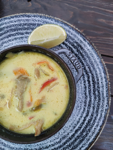 JEDZENIE: Bardzo długi czas oczekiwania przy umiarkowanym ruchu - zarówno na przystawki, jak i na dania główne. Wielkość dań umiarkowana - po zjedzeniu przystawek i dań głównych, nikt z nas nie wyszedł głodny, ale też nikt nie był najedzony. Gdyby jedzenie się obroniło smakiem, to długi czas oczekiwania i średnia obsługa nie miałyby żadnego znaczenia... Tu niestety również klapa. Krem z pomidorów to nic innego, jak po prostu zblendowane i rozgotowane pomidory z puszki. Zero filozofii, generalnie nic specjalnego. Flaki z boczniaków poprawne, ale zdecydowanie za słabo doprawione - były po prostu nijakie. Hummus sprawiał wrażenie niezbyt świeżego - miał kwaśnawy posmak, czasami miało się poczucie, jakby "musował na języku". Dania główne również nikogo nie zachwyciły - wegańskie curry to nic innego, jak po prostu rzadka zupa z małą ilością przypraw i kilkoma kawałkami pokrojonych w paski warzyw. Skórka z marchewki również się znalazła;) Do curry dostaliśmy zwykłe pieczywo, które w ogóle nie pasuje do tego dania. Nie mam pojęcia, kto wpadł na pomysł, by tak to zaserwować. Kalmary z pewnością są przygotowywane od A do Z na miejscu - panierka bardzo chrupiąca, ale niestety przesolona. Kalmary same w sobie natomiast były mocno przeciągnięte, dlatego były gumowate.