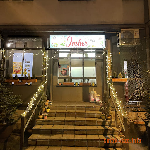 Restauracja Imber jest zdecydowanie miejscem wartym odwiedzenia. W trakcie wizyty miałem okazję spróbować wielu pozycji w menu - każda z nich była wyjątkowa na swój sposób. W ramach przystawki - chałka z pasztetem z kaczki podana z chrzanem z żurawiną - zarówno pasztet jak i chrzan były smaczne, bardzo delikatne w smaku. Drugą przystawką był polecany w karcie przez Magdę Gessler tatar ze śledzia po żydowsku - w mojej ocenie pozycja obowiązkowa w trakcie odwiedzin tego lokalu. Smaki tatara przenoszą nas w głowie trochę w okres Bożego Narodzenia - delikatny śledź, piernik który jest motywem przewodnim tego dania, orzechy, miód, rodzynki, imbir - to naprawdę nietypowe połączenie, ale bajecznie smaczne. W ramach dań głównych spróbowałem zalewajki - to co wyróżniało ją to aromat baraniny (podawana jest z kiełbasą baranią), choć była dość tłusta. Kolejną pozycją był Challaburger - kanapka z grillowaną baraniną, grillowaną/pieczoną papryką, cukinią, cebulą, sałatą i serem. Baranina dobrze przyprawiona, nie wysuszona, choć pomimo intensywności smaków bardziej dominująca w odczuciach była papryka. W tle wyczuwalna delikatna słodkość chałki - osobiście wolałbym chyba gdyby była podana w zwykłej maślanej bułce (jak hamburger), ale wiem, że ta przewijająca się słodkość to element kuchni serwowanej w tej restauracji. Kolejną pozycją był żulik z pastrami - również kanapka - składała się z ciemnego słodkiego pieczywa, mostku wołowego, kiszonej kapusty i sosu rosyjskiego. To danie nie skradło mojego serca - połączenie intensywności kiszonej kapusty z mocno musztardowym sosem niestety mi nie smakowało. Natomiast zaznaczę, że to tylko moje odczucia, bo pozostałe osoby, które mi towarzyszyły pozytywnie oceniły to danie :) Przedostatnim spróbowanym daniem - również polecana pozycja przez Magdę Gessler - tym razem mniej zaskakująca rekomendacja w porównaniu z tatarem. Pulpety dobrze przyprawione, dość intensywne w smaku równoważył delikatny śmietanowo-jogurtowy sos (nie wyczułem natomiast w nim aromatu oscypka, który jest wspomniany w karcie). Z kwestii do których można się doczepić to fasolka, która była trochę twardawa, oraz jajko, które odrobinę było przeciągnięte i żółtko częściowo ścięte. Last but not least - pierś z kaczki podana z kopytkami, buraczkami i sosem winno-porzeczkowym. Perfekcyjnie usmażona kaczka, różowa, soczysta, rozpływająca się w ustach w połączeniu z lekko kwaskowym sosem porzeczkowym były naprawdę genialne. Buraczki i kopytka również smaczne - choć same kopytka w konsystencji bliższe były kluskom śląskim :D W ramach deseru spróbowaliśmy sernika paschalnego - sernik z bryndzy, z dodatkiem bakalii - dość specyficzny w smaku, w związku z tym z jakiego sera został zrobiony sprawiał wrażenie takiego... "mącznego"? Raczej potraktowałem go jako ciekawostkę, bo wisienką na torcie okazał się drugi deser - chałwa. Danie okazało się dla mnie ogromnym zaskoczeniem - bo nigdy nie lubiłem chałwy, ale ta... Zakochałem się :D Przepyszna!!! Bardzo delikatna, z dodatkiem śmietanki, podana na zimno niczym lody, przystrojona... Do tej pory zastanawiam się czym ;-) Wizualnie i strukturę miało to jak nitki, po włożeniu do buzi rozpływało się i smakowało jak wata cukrowa - bardzo ciekawa i smaczna forma ozdoby deseru! Warto dodać - naprawdę bardzo przyjemna obsługa - pani kelnerka, która nas obsługiwała od początku podchodziła z uśmiechem, interesowała się czy wszystko jest w porządku. Ceny są w porządku - adekwatne do otrzymanej porcji i jakości - na tle dzisiejszych standardów restauracyjnych naprawdę niewygórowane. To co warto poprawić to wnętrze - sprawia wrażenie dość ciemnego, a drewniane ciężkie stoły i ławy bardziej budzą skojarzenie z barem, aniżeli dobrą restauracją, jaką bez wątpienia jest Imber :) Uwaga - przed wejściem do pokonania kilka schodków.