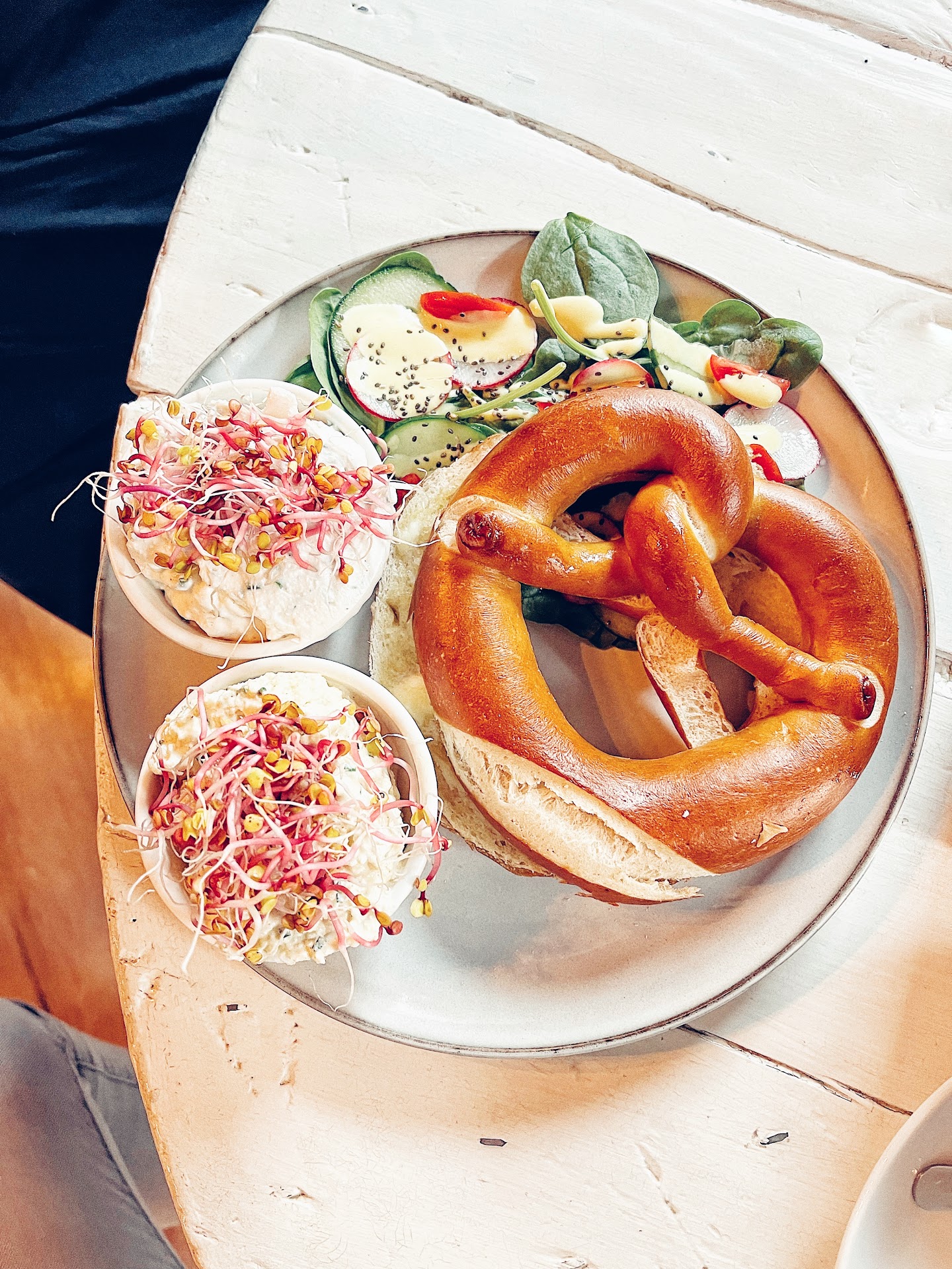 Read moreI recently enjoyed a wonderful breakfast at a charming café with a group of friends. The atmosphere was warm and inviting, creating the perfect setting for a relaxed morning together. We started with perfectly cooked scrambled eggs, paired with a fresh, vibrant salad. The delicious pretzel, soft on the inside and crisp on the outside, was a delightful addition, and the rich, aromatic coffee complemented our meal beautifully.