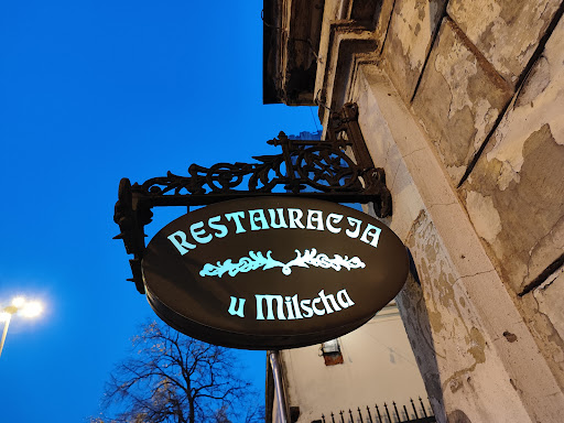 Do restauracji trafiliśmy (tym razem Trio jak ... Ale o tym później) przypadkiem 22 lutego. Spragnieni z żołądkami przyklejonymi do kręgosłupów wylądowaliśmy tutaj zaraz po przyjeździe z Warszawy śpiesząc się po pracy na koncert w Wytwórni, też TRIO tylko ciut wyższej półki ale tylko ciut bo moje koleżanki nie wiele ustępowały zacnym muzykom. Było ciemno trochę zawiewało pod szaliki ale świeżo poznana koleżanka okazała się świetnym przewodnikiem i koneserem. Dlaczego koneserem zapytacie? Otóż po chwili poszukiwania niewieżąc własnym oczom ukazał się niewielki szyld 'u Milsha' (a szkoda bo ktoś ze słabszym wzrokiem mógł pominąć). Dalej nie pewnym krokiem, bo co rusz to niespodzianka, to samotny wózek z lalką, pusty ogródkowy bar, schody z przed wojennej kamienicy (zresztą sami oceńcie), mnóstwo doniczkowych roślin (które kocham) i nic!?!?. No ale idziemy dalej, w górę, drzwi i tu też zaskoczenie, czy to mieszkanie? Zapach kuchni i gwar gości dały znak, że jesteśmy w dobrym miejscu. Krótka rozmowa z przemiłą kelnerką (pozdrawiam) - stawiamy na szybką obsługę. Udało się. Wino tamtejsze będę długo pamiętał, ten bukiet, kolor i smak. Zarówno białe jak i czerwone pierwyj sort. Ja jako trawożerca zamówiłem pierogi, koleżanki barszcz ukraiński i sałatki. Tu niestety mały '-' za to, że barszczyk bez fasolki. Poza tym smaczne i super podane. Szkoda, że mieliśmy tak mało czasu ale na pewno, jak będę w Łodzi to zajrzę tam ponownie. Pewnie posmakuję i pokosztuję zarówno trunków...