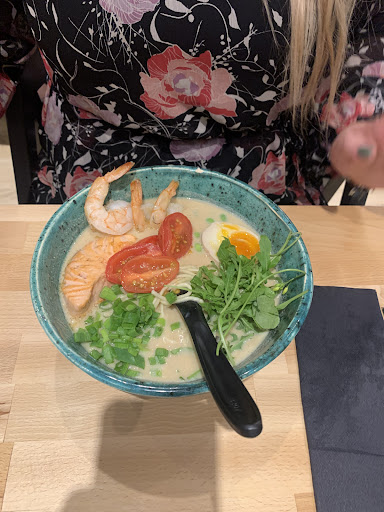 Read moreSushi mocno mnie rozczarowało. Owszem, produkty świeże, ale smak i sposób przygotowania pozostawiał wiele do życzenia. Pierwszy raz spotkałem się z sytuacją, gdzie praktycznie każdy rodzaj rolki rozpadał się na kawałki, niezależnie od tego, czy chwycimy ją pałeczkami, czy weźmiemy w dłonie. To zdecydowanie nie piwinno tak wyglądać. Druga, o wiele istotniejsza kwestia to sam smak. Nigdzie w karcie nie ma wzmianki o tym, że każda z 32 rolek w zestawie podawana jest na słodko. Pani przyjmująca zamówienie również o tym nie wspomniała. Zwykle różne rolki smakują zupełnie inaczej - ale nie tutaj. Każdy rodzaj miał niemalże identyczny, słodki smak. Ramen natomiast dość smaczny, choć przy tej cenie możnaby spodziewć się w nim lepszej jakosci mięsa. W kwestii obsługi - jeżeli przychodzi para i podaje się karafkę wody, wypadałoby podać do niej 2 szklanki, a przynajmniej zapytać. Talerzyki do sushi też możnaby przynieść od siebie, a nie zanim klient zapyta. Umiejscowienie lokalu słabe, a sam lokal skromny, schludny, ale niczym nie porywa. Podsumowując - za kwotę 250zł naprawdę można zjeść o niebo lepsze sushi w fajniejszym miejscu. 3 gwiazdki tylko za ramen, który...