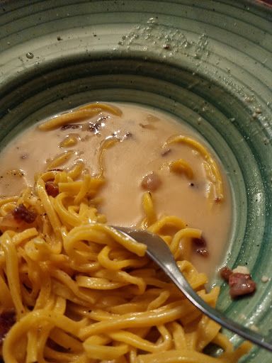 Read moreDaje ocenę pięć bo nigdy nie jadłam równie dobrej pizzy! Była przepyszna! I podana też bardzo szybko, widać, że pan Ryszard zna się na rzeczy, zamówiłam również makaron również był bardzo smaczny, ale to dla tej pizzy wrócę tam chociaż jest ciężko znaleźć to miejsce nawet przy pomocy Google maps, już niejednokrotnie ktoś pisał w opiniach, że przydałaby się tablica z informacją gdzie trzeba skręcić i to dobry pomysł. Przez brak produktów nie mieliśmy niestety okazji spróbować kremu pomidorowego i bruschietty a szkoda. Jedyne co jest wręcz tragedią to obsługa kelnerska, rozumiem, że Pani była dopiero trzeci dzień w pracy, ale mylila zamówienia, a kiedy zapytałam czy można zmienić makaron do dania to zamiast spytac kogoś o to to po prostu odpowiedziała, że ona to nie wie bo trzeci dzień pracuję.... o drugim naszym makaronie w ogóle zapomniano i dopiero po godzinie jak się upomnelismy, że jeszcze jeden makaron powinien być to wtedy zaczęto go przygotowywać.... Na podanie rachunku również trzeba było odczekać swoje... Gdzie dostaliśmy terminal z wpisaną kwotą, ale bez paragonu i trzeba było Pani powiedzieć czy możemy dostać paragon to wtedy Pani go podała bo był wydrukowany, ale chyba zapomniała podać ... Pani po prostu w roli kelnerki się nie odnalazła, dobrze że był Pan Ryszard bo nie raz widziałam jak sam wychodzili podając pizzę do stolika. Więc poza jedzeniem było sporo minusów, ale tak jak wcześniej wspominałam pizza przeszła wszelkie moje wyobrażenia dlatego daje pięć i będę polecala pizzę, ale niestety bardziej na wynos niż...