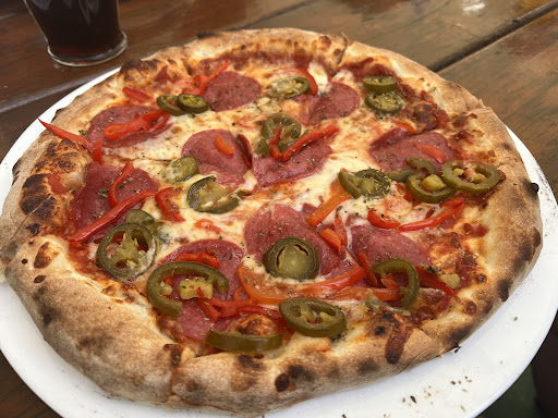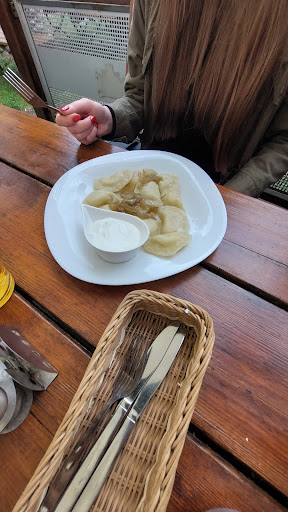 Possibility to dine inside or outside (beer garden, simple tables and benches). Pepperoni pizza (large, PLN 30) was tasty, but pizza sauces (we tried spicy and garlic) were not necessarily so. The borscht with croquette was OK (too little stuffing though). Dumplings with blueberries and cream (served on the side) - a large portion, tasty. Even though there was only one waitress, the order was taken very quickly. Drinks were brought almost immediately and dishes soon after. Draft beer - Tyskie only. From bottled: Książęce and Kozel. The non-alcoholic Kozel (0.0%) was...