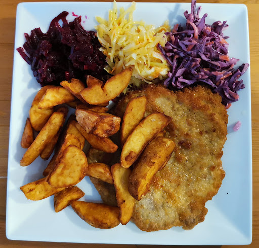 Read moreWaren in der Pizzeria zum Mittagessen, allerdings ganz klassisch deutsch, Schnitzel mit Bratkartoffeln (was dann Kartoffelspalten waren). Also das Ambiente ist eher kühl aber alles war sauber und ordentlich. Etwas verwirrt hat uns der Herr im Feinripp Unterhemd der direkt an der Eingangstür saß (in welcher Funktion - unklar). Das Essen war mit 26 Złoty pro Portion gewohnt preiswert, dafür bekommt man aber nichts außergewöhnliches. Das Schnitzel war viel zu blass gebraten. Die Kartoffelspalten waren ok. Auch den Rohkost- und Rote Beete Salat konnte man essen. Lobend zu erwähnen ist die sehr junge Bedienung, die sich alle Mühe gab, die Bestellung auch in deutsch aufzunehmen. Fazit: Zum Schnitzel Essen gibt es sicher bessere...