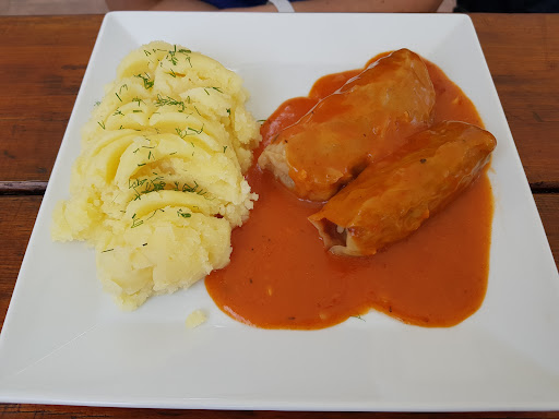 The shab pod pierzyaka (sic?) I have had was actually very nice (the meat with the Bigos topping), but the potatoes were not roast potatoes but microwave re-heated plain potatoes. The accompanying salads were really poor, too. And they managed to serve me the goulash soup and the main dish at the same time.