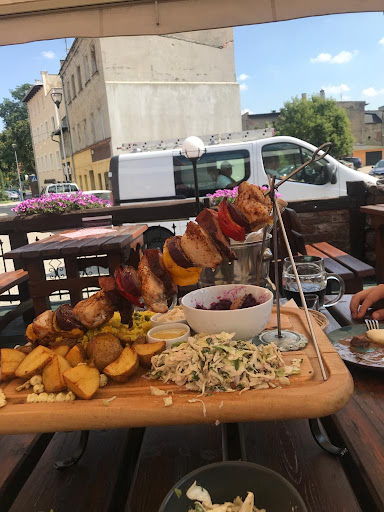 Read moreBardzo miła i sympatyczna obsługa , panie kelnerki ubrane w ciekawe folkowe stroje na plus bo w większości restauracji kelnerzy chodzą zwyczajowo ubrani w nudną czerń. W restauracji zatrzymaliśmy się na trasie z Wrocławia do Karpacza . Syn zamówił hamburgera: mięso oraz Burger był ok , kotlet mógłby być bardziej soczysty , jakość bułki do burgera taka jak wszędzie - ja osobiście w większości knajpek nie lubię tego typu bułki według mnie burgery lepiej smakują z dobrą bułką typu pita lub ciabattą ale to jest tylko moje bardzo indywidualne zdanie, mąż zamówił sznycla -był to bardzo duży kotlet , surówki mała ilość w stylu nie polskim lecz angielskim/amerykańskim była to surówka typu coleslaw , ziemniaki puree bardzo dobrze zrobione -rozpływały się w ustach , sznycel w panierce też bardzo smaczny, córka zamówiła danie sezonowe : makaron ze szparagami - danie bardzo smaczne , ja jadłam sałatkę z grillowanym łososiem i grzaneczka z czosnkiem oraz frytki z batatów -byli to danie bez zastrzeżeń bardzo dobre i ładnie podane , do picia klasyczne Mohito : mięta wystawała z Mohito -dobrze by było aby w drinku również było trochę świeżej mięty ale spokojnie można było sobie ugnieść rurką do picia drinka by wydobyć aromat mięty , na początku pani kelnerka przyniosła Nam starter: pierwszy raz spotkałam się z sytuacją aby na starter podano kiszoną kapustę oraz ogórki kiszone -pod koniec pani kelnerka poczęstowała Nas kieliszkami wiśniówki . Polecam to miejsce -jak na taką małą Świdnicę jest to bardzo dobra restauracja godna polecenia i...