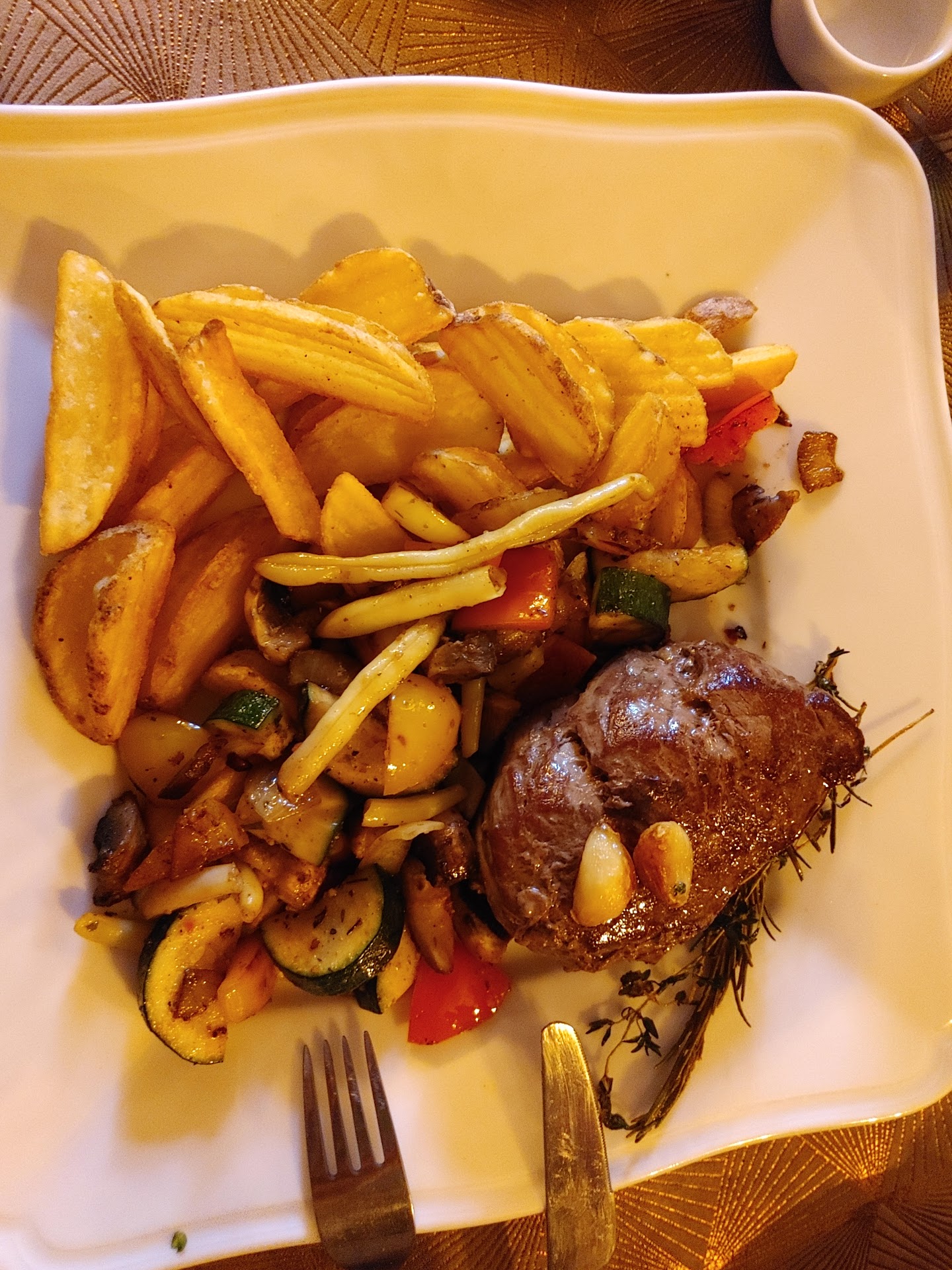 Aktualizacja opinii 28.07.24 : Miałem nie uzewnętrzniać się, ale nie daje mi ta sytuacja spokoju. Z racji tego, że klika wcześniejszych wizyt była nienaganna (jedzenie, obsługa, etc.) to niestety ostatnia z 28.07.24 pozostawiła wielką zadrę na poprzednich moich opiniach o tym miejscu , gdyż: zamówiłem steka (który był wyśmienity) niestety grzyby na których leżał posiadały w sobie "dzikich" lokatorów - czytaj białe robale. Zjadłem ok połowę z grzybów aż się zorientowałem, że posiadają dodatkowy "wsad". Z racji, że nie jestem "obrzydliwy" grzyby odsunąłem (nie wiem ile udało mi się ich spożyć ) i ich dalej z nie spożywałem i dokończyłem swoje danie. Po przyjściu kelnerki, która przyjmowała zamówienie pokazałem "znalezisko" i usłyszelem tylko informację, że przekaże to do kuchni. Żadnego przepraszam, że zaraz ktoś podejdzie i wyjaśni sytuację, etc . Poprosiłem o rachunek ...i przyniosła inna osoba (pewnie pani kelnerka, która obsługiwała stolik sądziła, że może będzie jakoś dym to wysłała z rachunkiem inną osobę). Rachunek standard... Żadnego doliczenia/odliczenia za "nadmiarowy" posiłek.