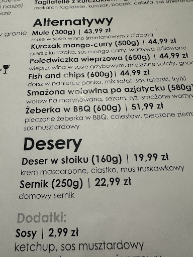 Uwaga na wstępie - ocena na 5 gwiazdek jak najbardziej zasłużona bo odpowiada za całokształt pobytu i wrażeń a nie dotyczy wyłącznie jakości jedzenia. Do rzeczy. Restauracja dość popularna i warto zrobić rezerwację bo nam wejście z partyzanta z ulicy i zajęcie stolika prawie się nie udało. Zamówiliśmy żeberka, stejk z antykotu i kalmary na przystawkę. I tu pojawia się pierwszy z ogromnych plusów lokalu - przesympatyczna, uśmiechnięta i doskonale fachowa p. Paulina która zna menu, potrafi opowiadać o daniach i autentycznie coś polecić - naprawdę pełna profeska i jeżeli czyta to właściciel lokalu to p.Paulinie powinna wpaść gruba premia. Kalmary doskonałe, żeberka same rozpływały się w ustach, stejk poprawny, fryteczki i pieczone ziemniaki takie jak powinny zawsze być, generalnie widać że na kuchni działa kolejny fachura a nie człowiek z łapanki. Obrazu lokalu dopełniają takie małe smaczki jak płyn do płukania ust dostępny dla gości w obu toaletach czy produkty higieniczne. Restauracja warta każdej gwiazdki i...